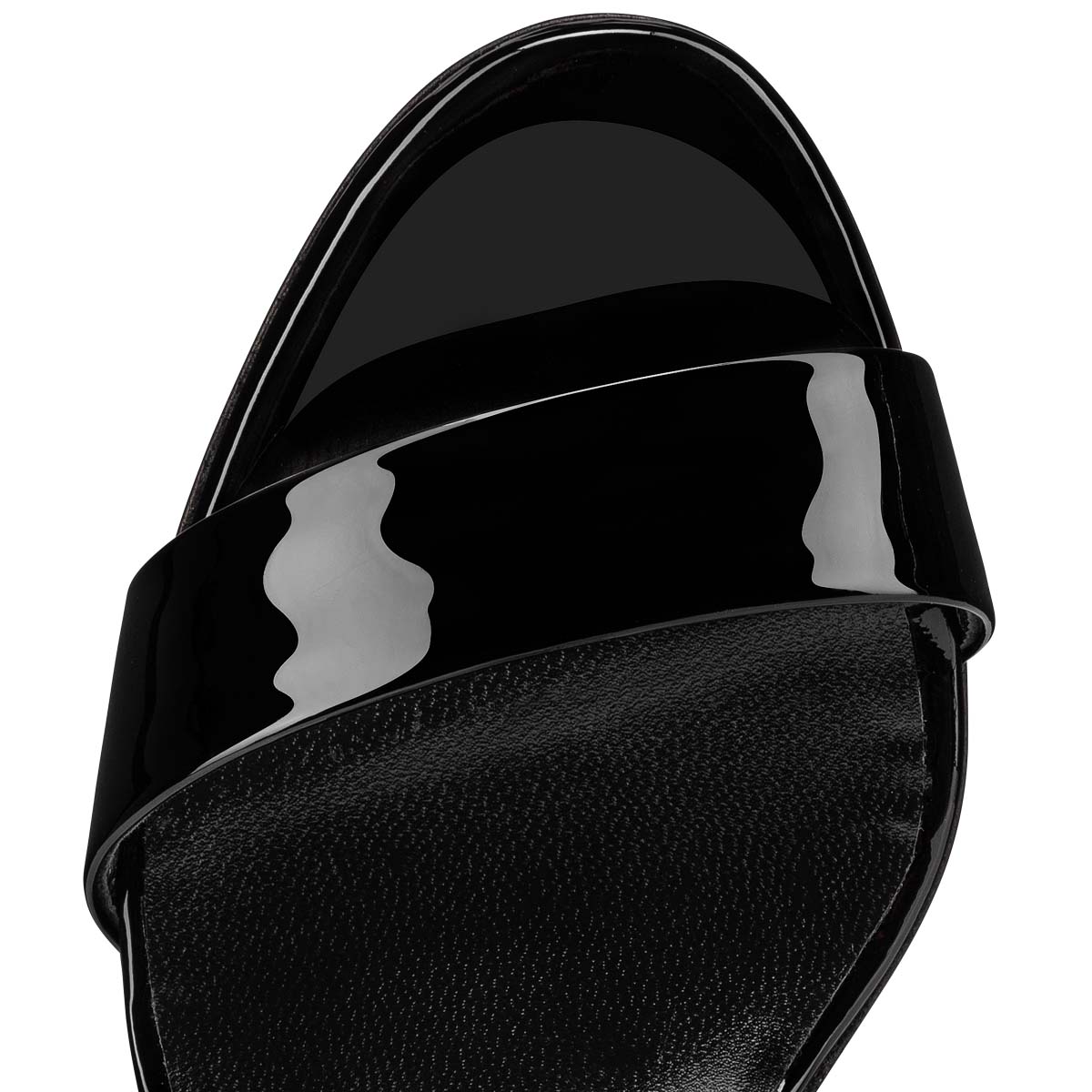A summery model with sleek lines, the Miss Sabina sandal features an 85 mm asymmetrical heel. The straps cross behind the ankles and are adorned with delicate square clasps. Entirely crafted in black patent calf leather with discreet topstitching, it showcases Maison Christian Louboutin’s creativity and expertise.